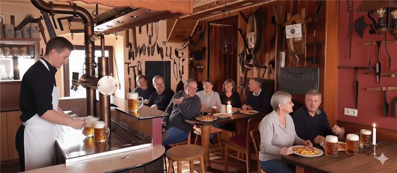 Unsere Gäste finden an den Wänden im Restaurant eine umfangreiche Sammlung der traditionellen Werkzeugmacher-Kunst. Die rund ca. 800 Sammelstücke ermöglichen Ihnen eine Reise durch die Geschichte der Werkzeug-Herstellung und des Handwerks. Sägen, Sicheln, Hammer, Stemmeisen und viele andere Werkzeuge können Sie während Ihres Besuches in unserem Brauhaus-Restaurants entdecken.